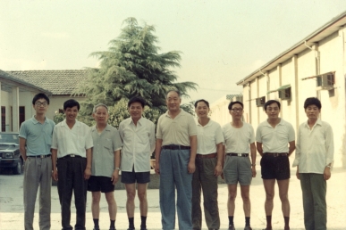 The former deputy director of the Jiaxing Municipal People's Congress and the then secretary of the Haining Municipal Party Committee, Tian Yongchang (middle) and other leaders took the group photo with the director of Shen Guofan.