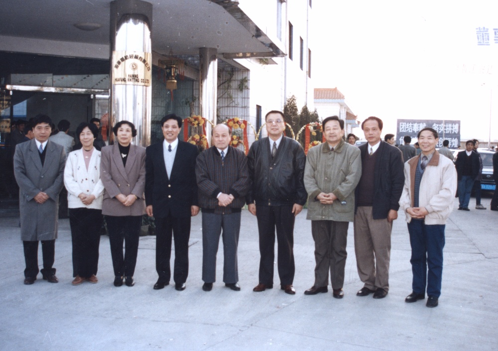 時任全國政協(xié)常委、原浙江省省長沈祖?zhèn)?左五)等領(lǐng)導(dǎo)在浙江宏達經(jīng)編實業(yè)公司