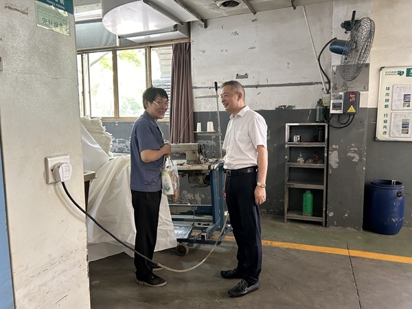 他們先后來到公司溫度最高的兩個車間染整定型、染整染色車間,向在高溫天氣中堅守崗位的一線員工表示親切的慰問和感謝。在生產現場,囑咐大家高溫生產不忘安全,做到勞逸結合;也要求各部門切實做好防暑降溫工作,保障員工健康安全。