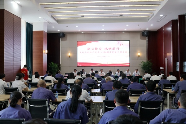6月28日下午,宏達集團黨委在公司會議室召開“凝心聚力 砥礪前行”慶祝中國共產黨成立104周年黨員、干部大會,集團黨委書記、宏達高科董事長沈國甫率公司全體黨員、干部60余人參加會議。市派黨建指導員俞新甫蒞臨指導會議,會議由黨委副書記胡郎秋主持。