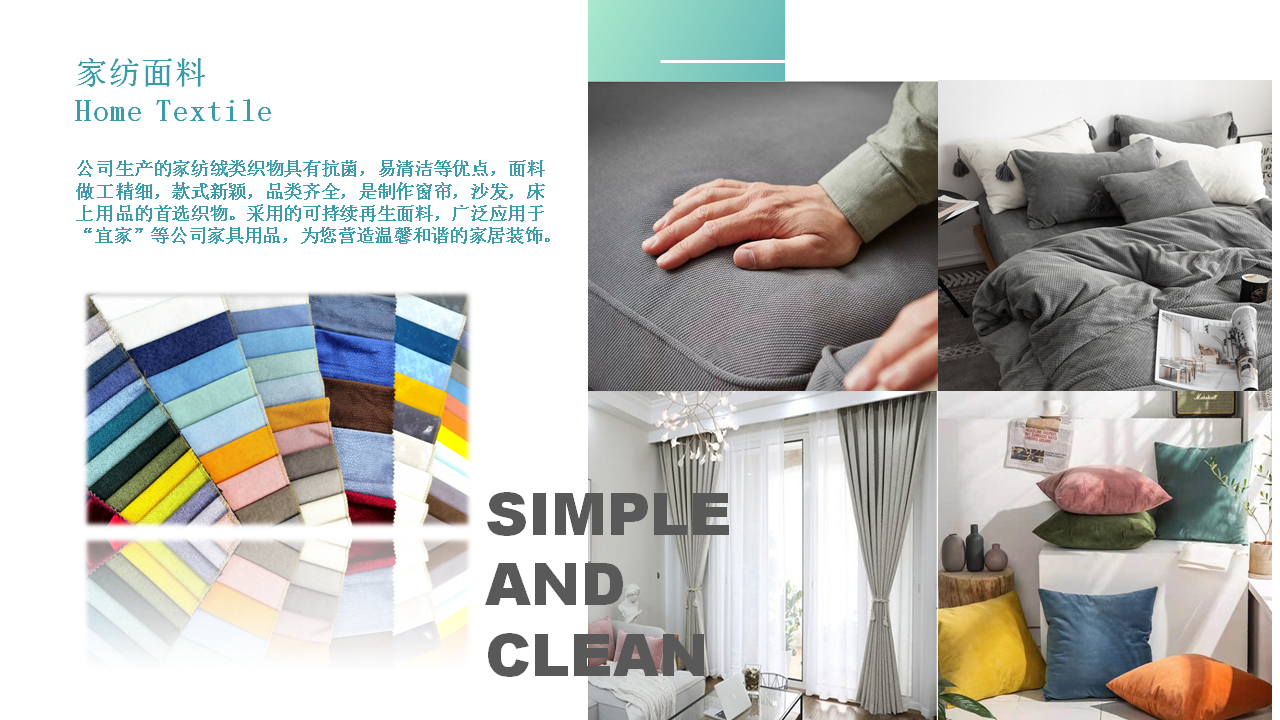 公司創造性的應用進口生產設備,精心采購國際優質原材料和染 化料,所生產的彈性和尼龍面料制作各種泳衣、潛水服、內衣、 文胸、睡衣的理想面料,具有穿著舒適,觸感輕柔、恢復性好易 吸汗、不產生靜電等優點,系列產品被評為“浙江省高質量科技 產品”。生產的網眼、起絨類經編面料,更是運動衣、體操衣、 滑雪衣、球類衣等的上乘面料之選。目前,公司生產的系列面料 已通過Oeko-Tex Standard 100生態紡織品認證,品質達到 國際先進水平,批量配套阿迪達斯等世界著名品牌,遠銷歐美。